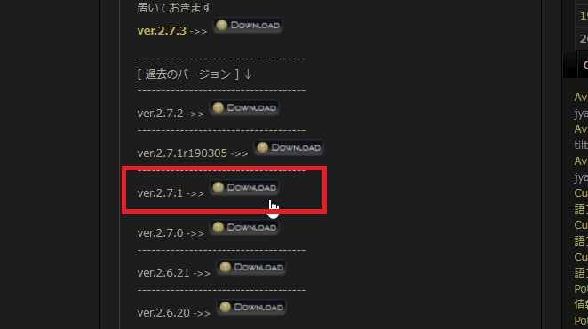 今回は、「2.7.1」の右の「DOWNROAD」ボタンをクリック。