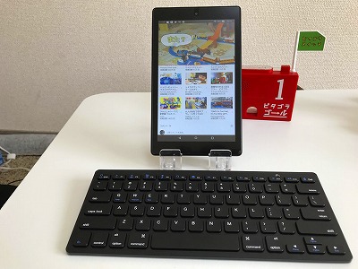 iClever bluetoothキーボードをKindle Fire HD8のそばに置くとこんな感じ。