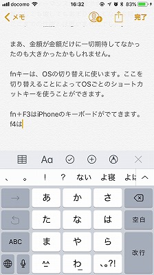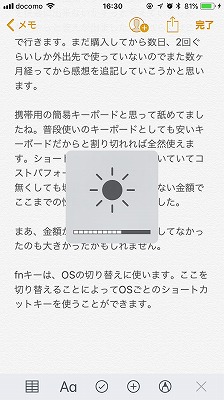 では、iphoneにペアリングした場合のfnキーのショートカットを見てみましょう。