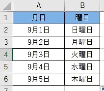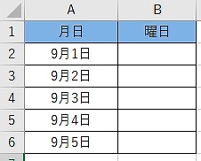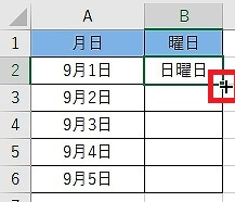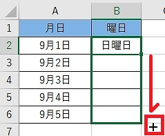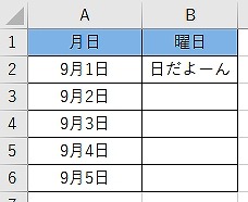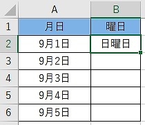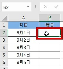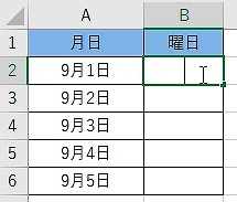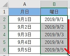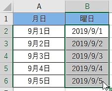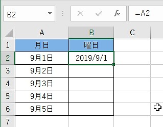 この場合だと、A2に「2019/9/1」と入力しましょう。