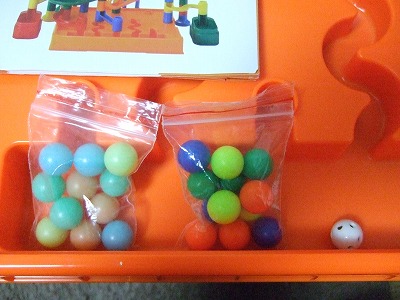 ピタゴラゴールの球はちゃんとくみくみスロープで遊べます。