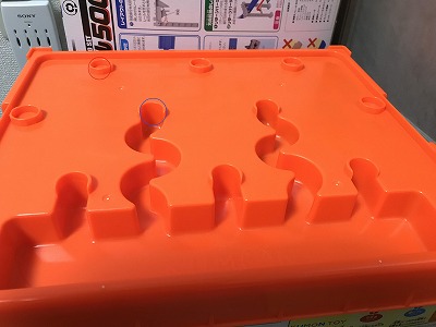 下の写真は横から見たところ。ちゃんと傾斜がついていて、球が流れるようになっています。