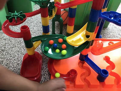 「2歳からくみくみスロープを楽しめるの?」という感じもしますが、小さい子は球が流れるのを見ているだけでも十分楽しんでくれます。